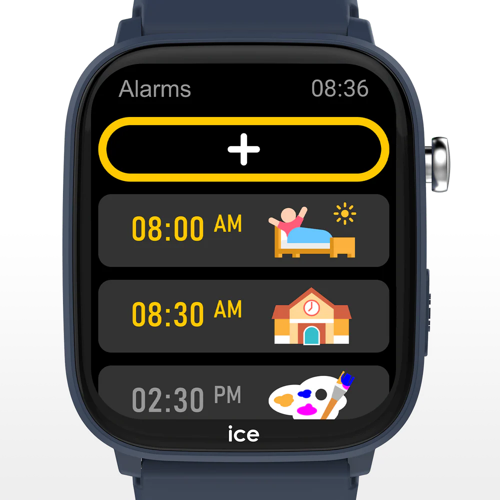 Easy to configure via the ICE Junior app, they appear directly on the watch with playful icons to guide the child at the right time.