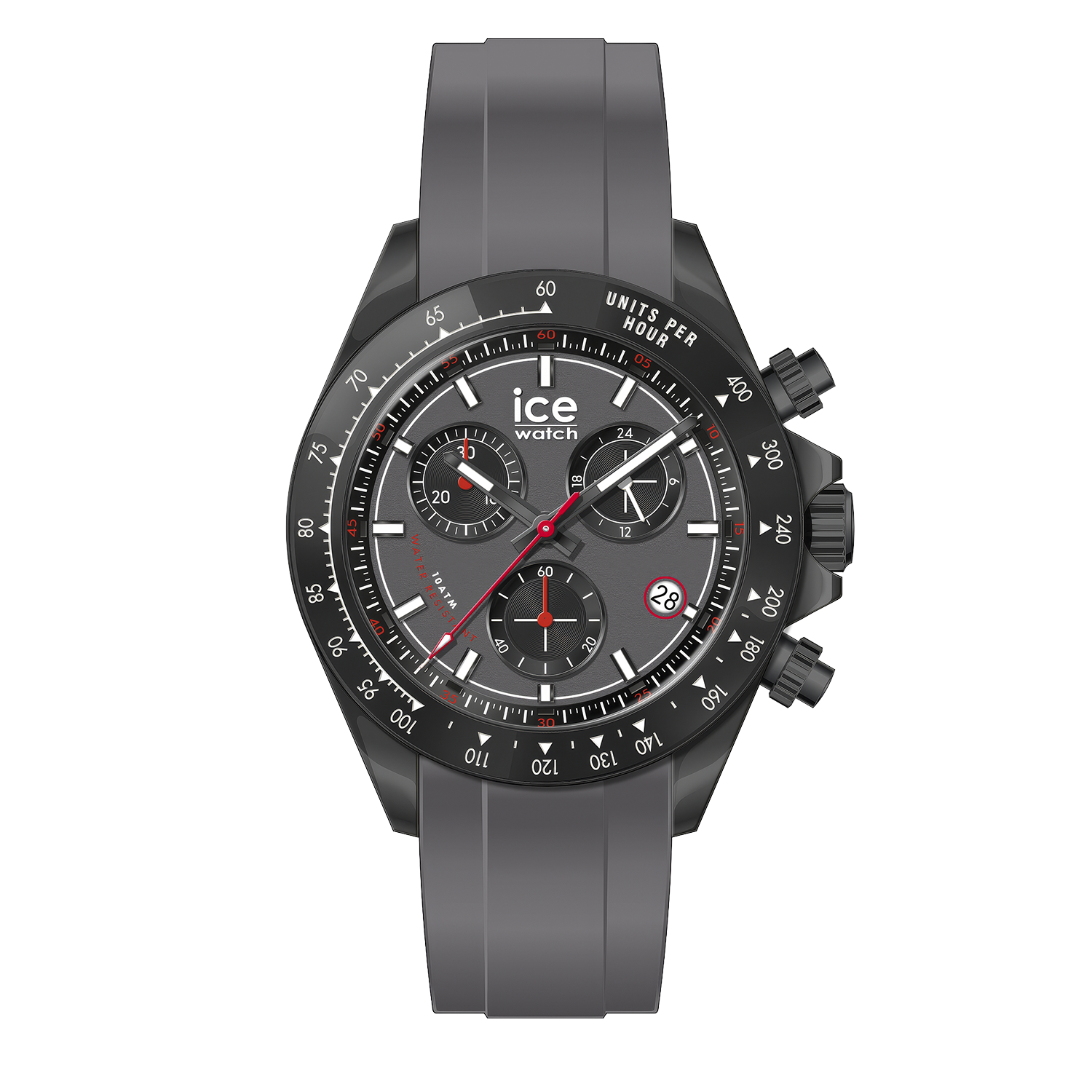 Let yourself be captivated by understated sporty sophistication with the ICE-WATCH Bewatch Chrono. Featuring a sleek grey silicone strap and a dark chronograph dial with subtle red accents, this watch delivers a modern, versatile look with a touch of dynamic energy for everyday wear.