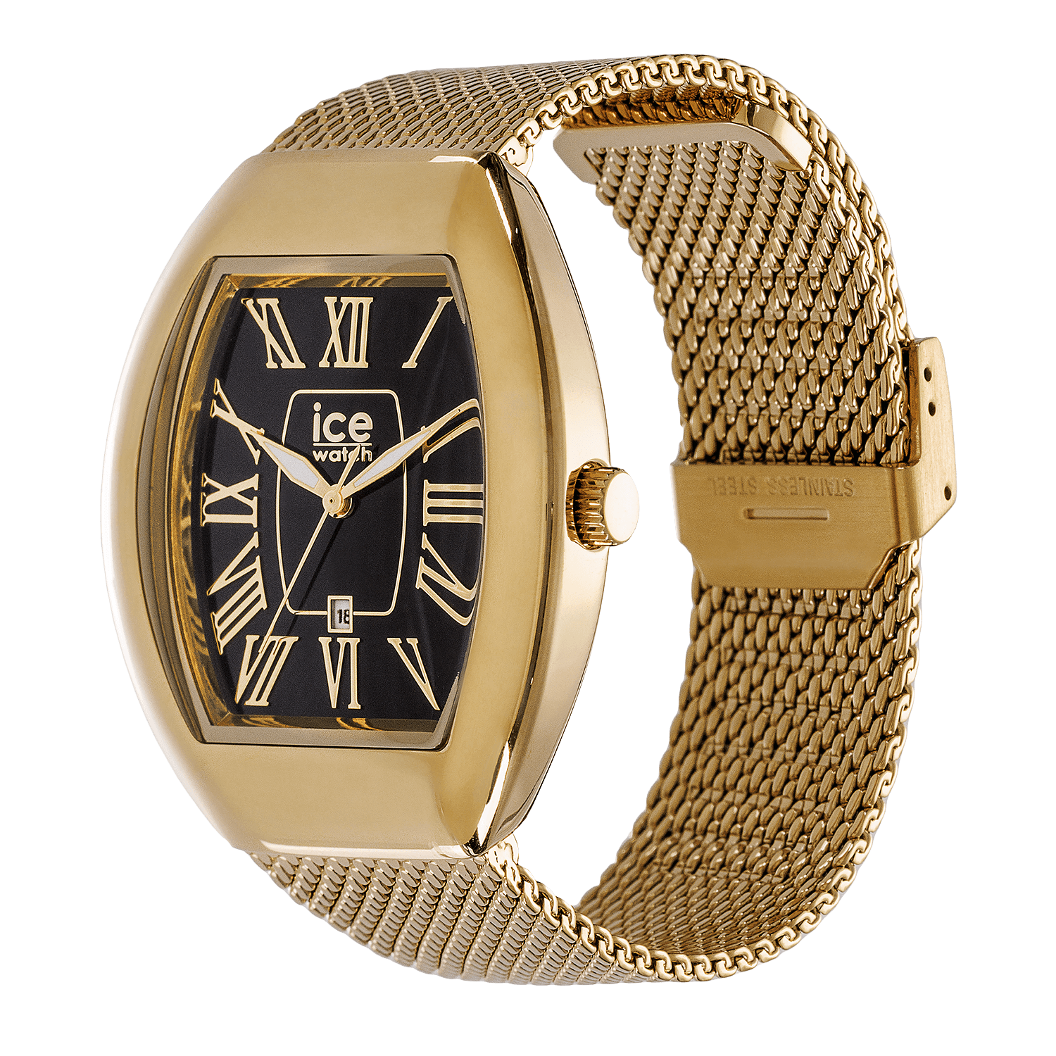 Discover the timeless elegance of the ICE dome - Metal mesh Black gold watch. With its ultra-refined metal mesh strap and shiny gold dial, this watch embodies the perfect marriage of modernity and sophistication. Comfortable and lightweight, it's perfect for all your outfits, whether chic or casual. It's the perfect accessory for making a bold style statement.