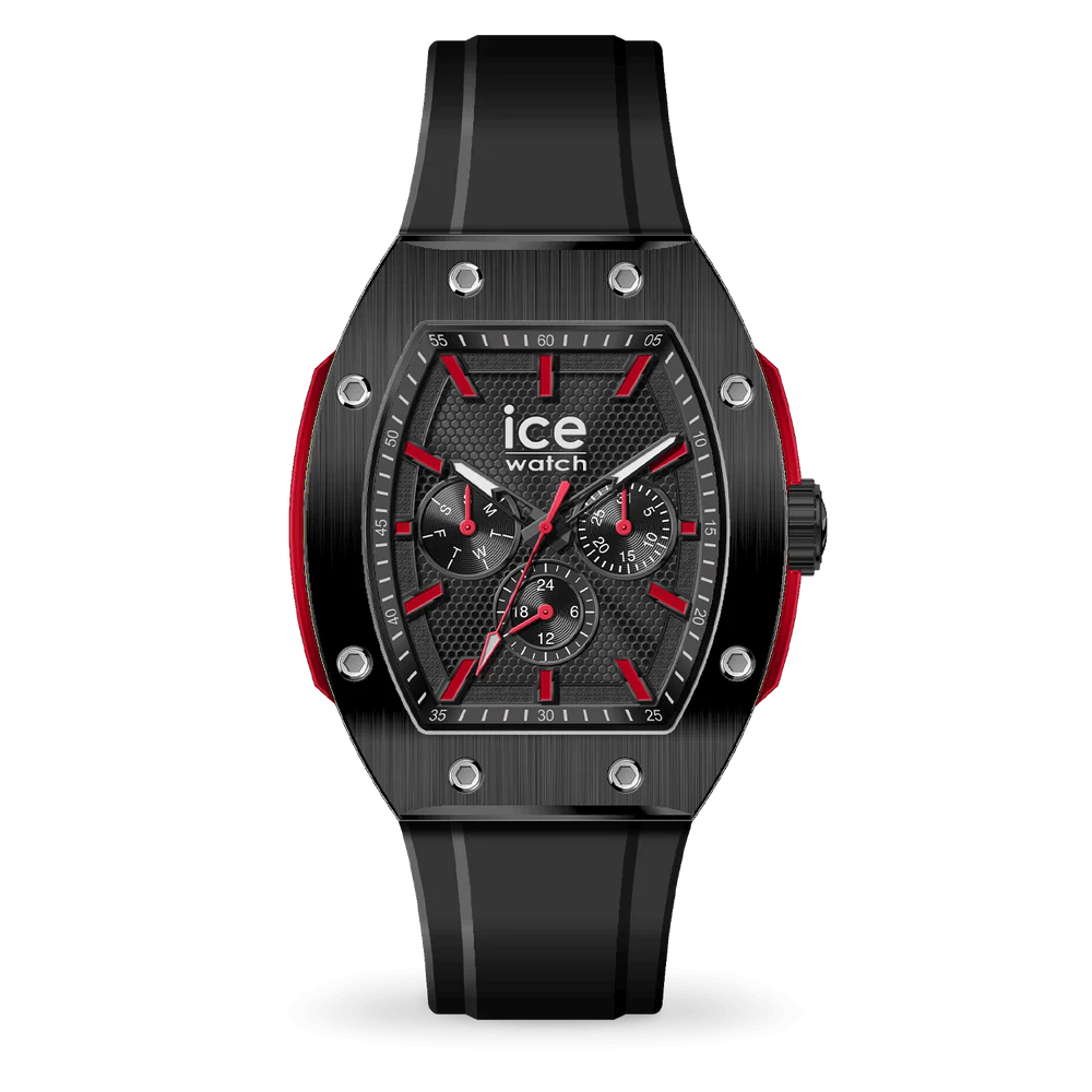 ICE Boliday Prestige Black red: a modern contrast with red details, combining elegance and functionality. Lightweight, durable plastic case, robust steel dial and precise multifunction movement. A sophisticated and practical accessory for all occasions, whether for a business meeting or a casual outing.
