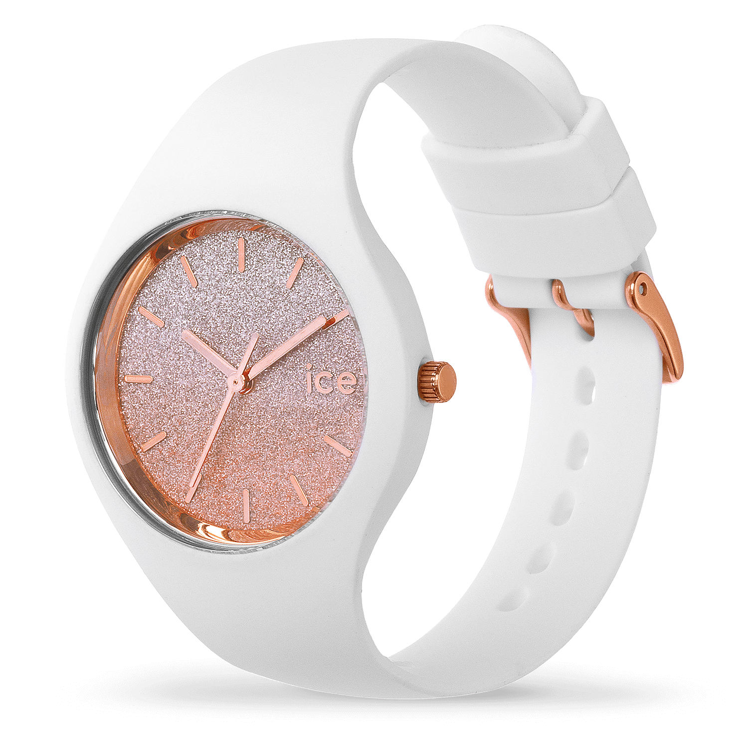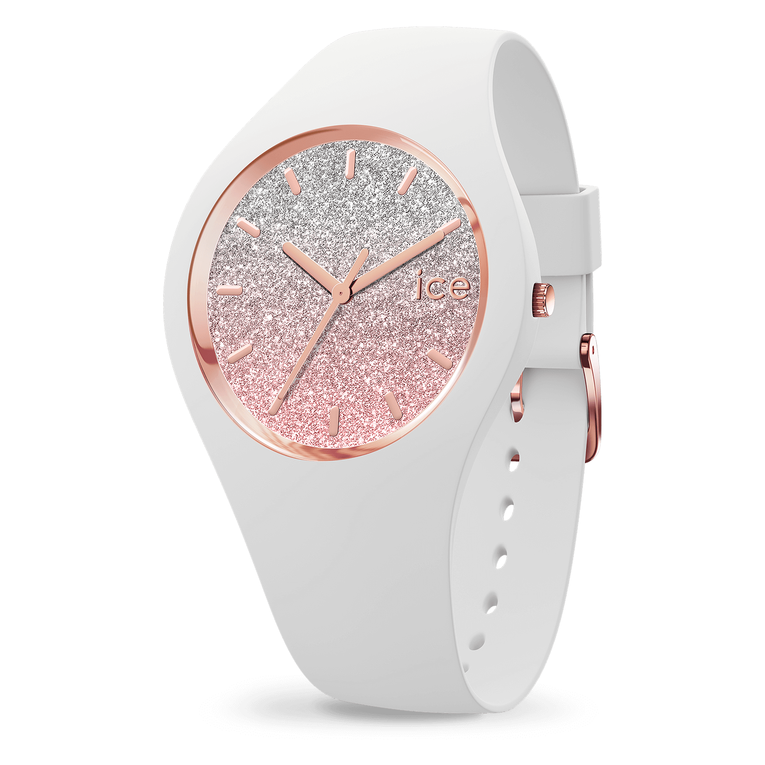 Let yourself be captivated by chic elegance with the ICE lo White Pink. Featuring a soft white silicone strap and a stunning pink-gold glitter dial, this watch brings a luminous and feminine touch to any look. Its refined design balances playful shimmer with everyday comfort, making it an ideal accessory for both casual and dressed-up occasions.