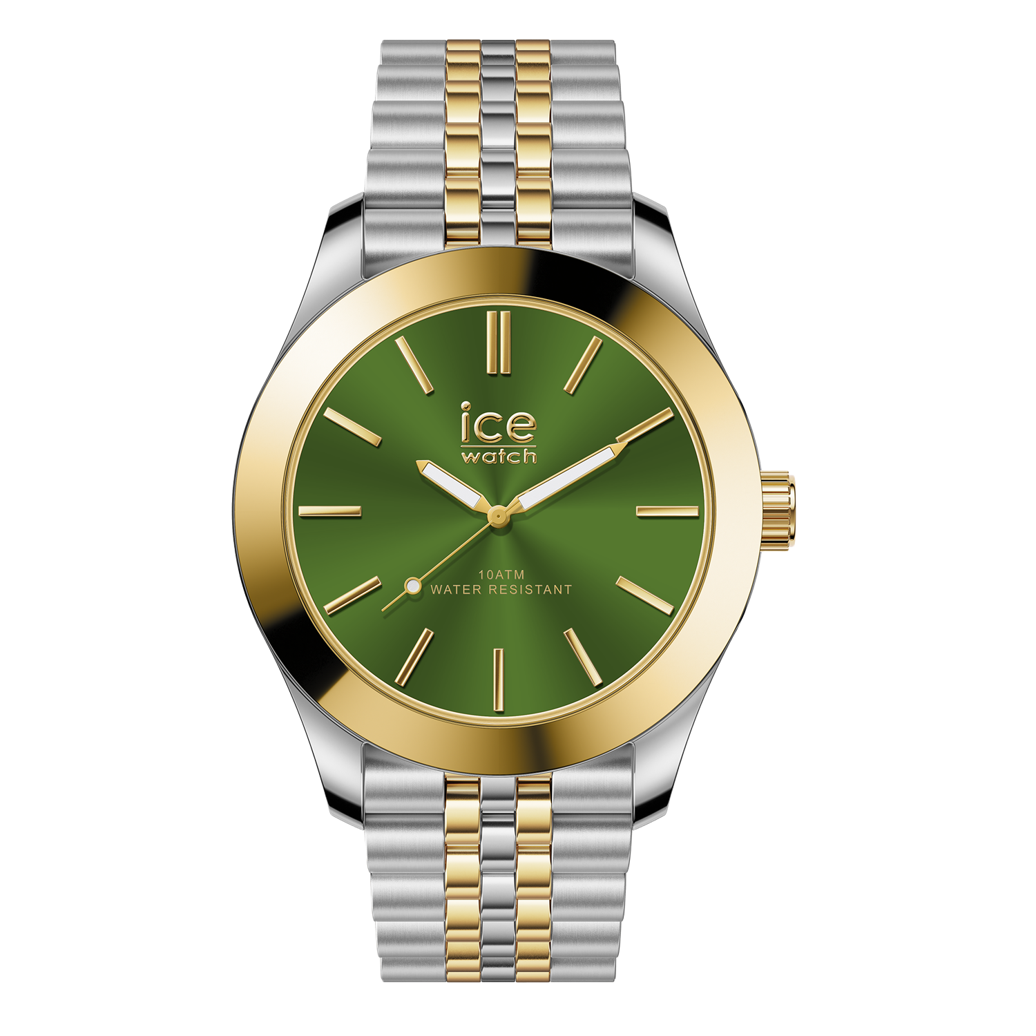 Discover the ICE steel - Silver gold green — a chic timepiece that blends modern elegance with timeless style. Featuring a silver and gold stainless-steel case paired with a vibrant green dial, this watch adds a refreshing yet refined touch to any outfit.