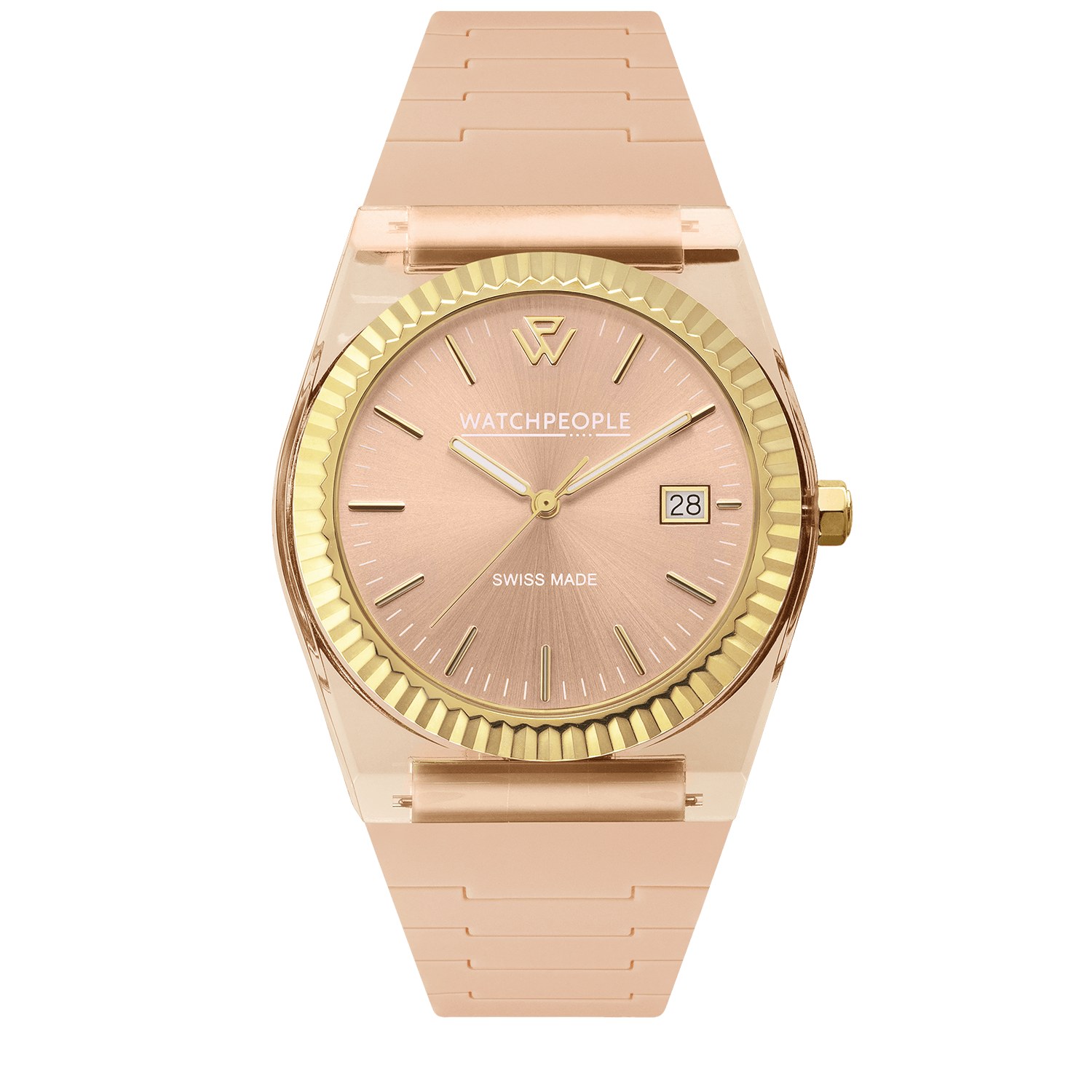 Soft, warm, and cheerful, the WP1 Soft Peach brings a comforting elegance to your everyday style. Its refined dial, adorned with delicate gold accents, strikes a perfect balance between sophistication and casual charm. Paired with a peach-toned silicone strap, this timepiece radiates gentle vibrancy. Crafted with Swiss Made precision, it features a sapphire crystal that provides unrivalled protection against scratches, preserving its beauty over time.